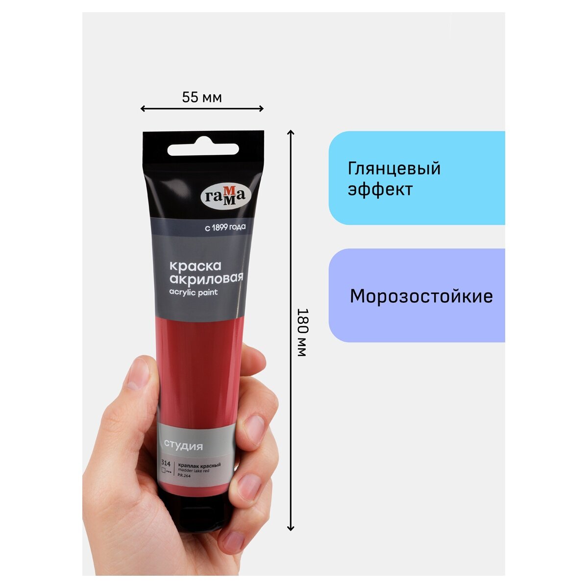 Гамма Акриловая краска Студия, пластиковая туба (280220), 75 мл, краплак красный