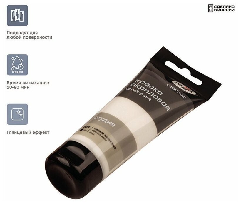 Краска акриловая художественная для рисования Гамма "Студия" профессиональная белая (белила титановые), туба 75 мл / Акрил для живописи и творчества для художников 213 ₽
