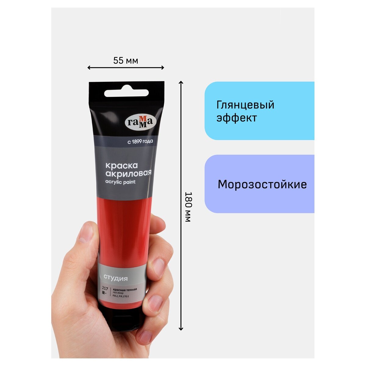 1 шт - Краска акриловая художественная Гамма "Студия", 110мл, пластиковая туба, красная темная информация: