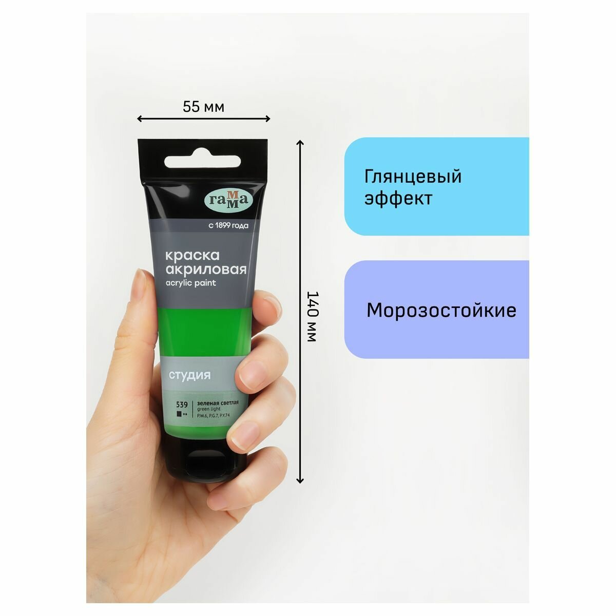 Краска акриловая художественная Гамма "Студия", 75мл, пластиковая туба, зеленая светлая