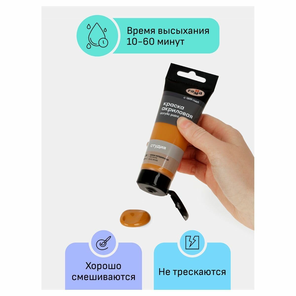 Отзывы на 6 шт - Краска акриловая художественная Гамма "Студия", 75мл, пластиковая туба, сиена натуральная