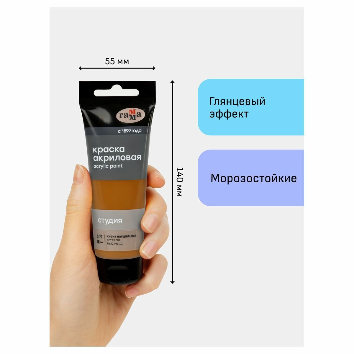 6 шт - Краска акриловая художественная Гамма "Студия", 75мл, пластиковая туба, сиена натуральная информация:
