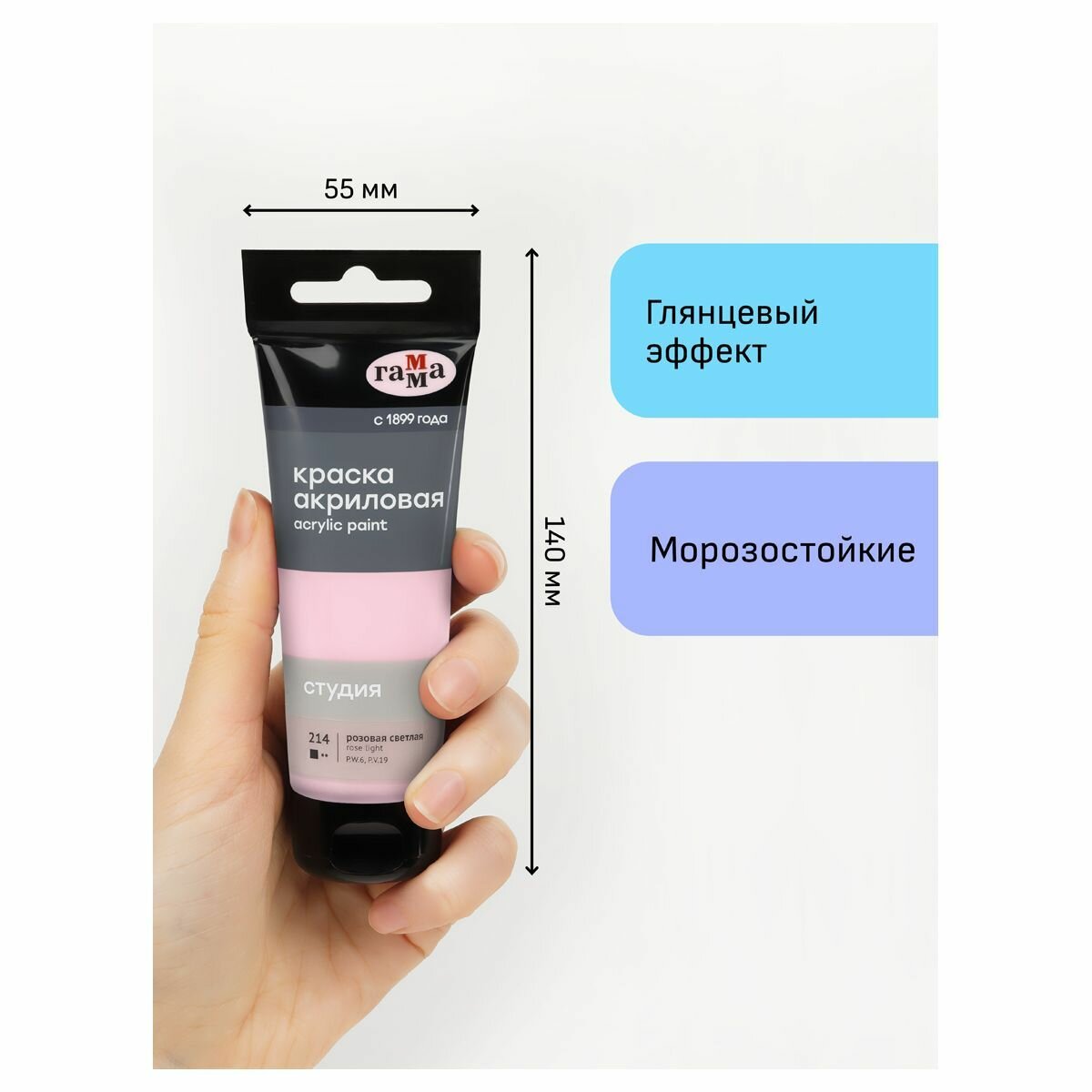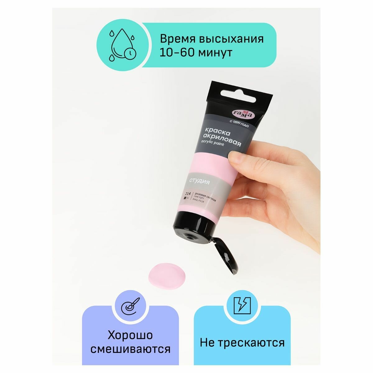 10 цен на 6 шт - Краска акриловая художественная Гамма "Студия", 75мл, пластиковая туба, розовая светлая