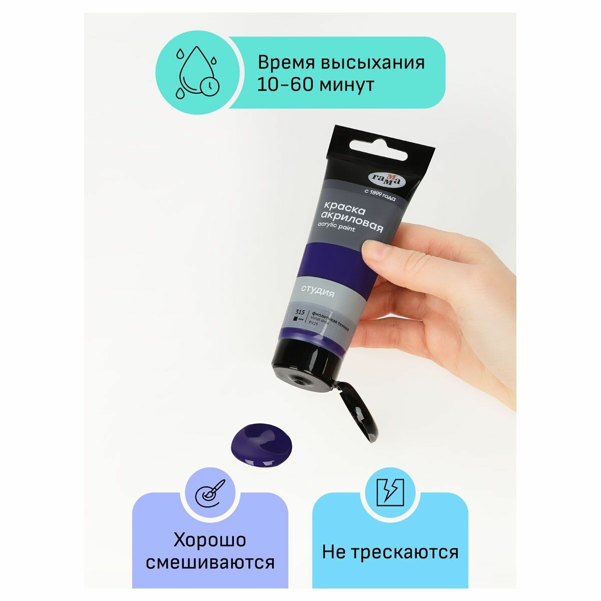 Отзывы на 6 шт - Краска акриловая художественная Гамма "Студия", 75мл, пластиковая туба, фиолетовая темная