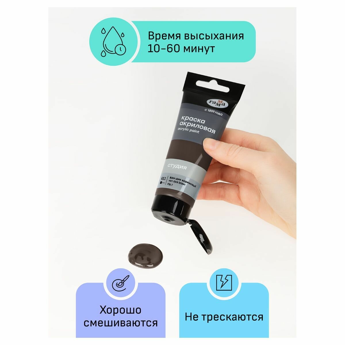 Краска акриловая художественная Гамма "Студия", 75 мл, пластиковая туба, ван-дик коричневый 187 ₽
