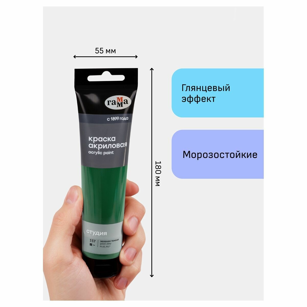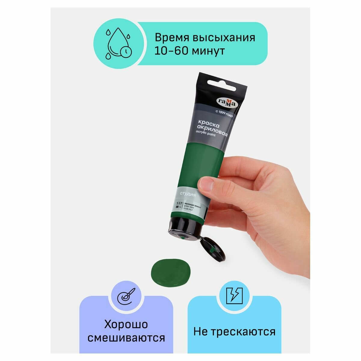 Отзывы на 6 шт - Краска акриловая художественная Гамма "Студия", 110мл, пластиковая туба, зеленая темная