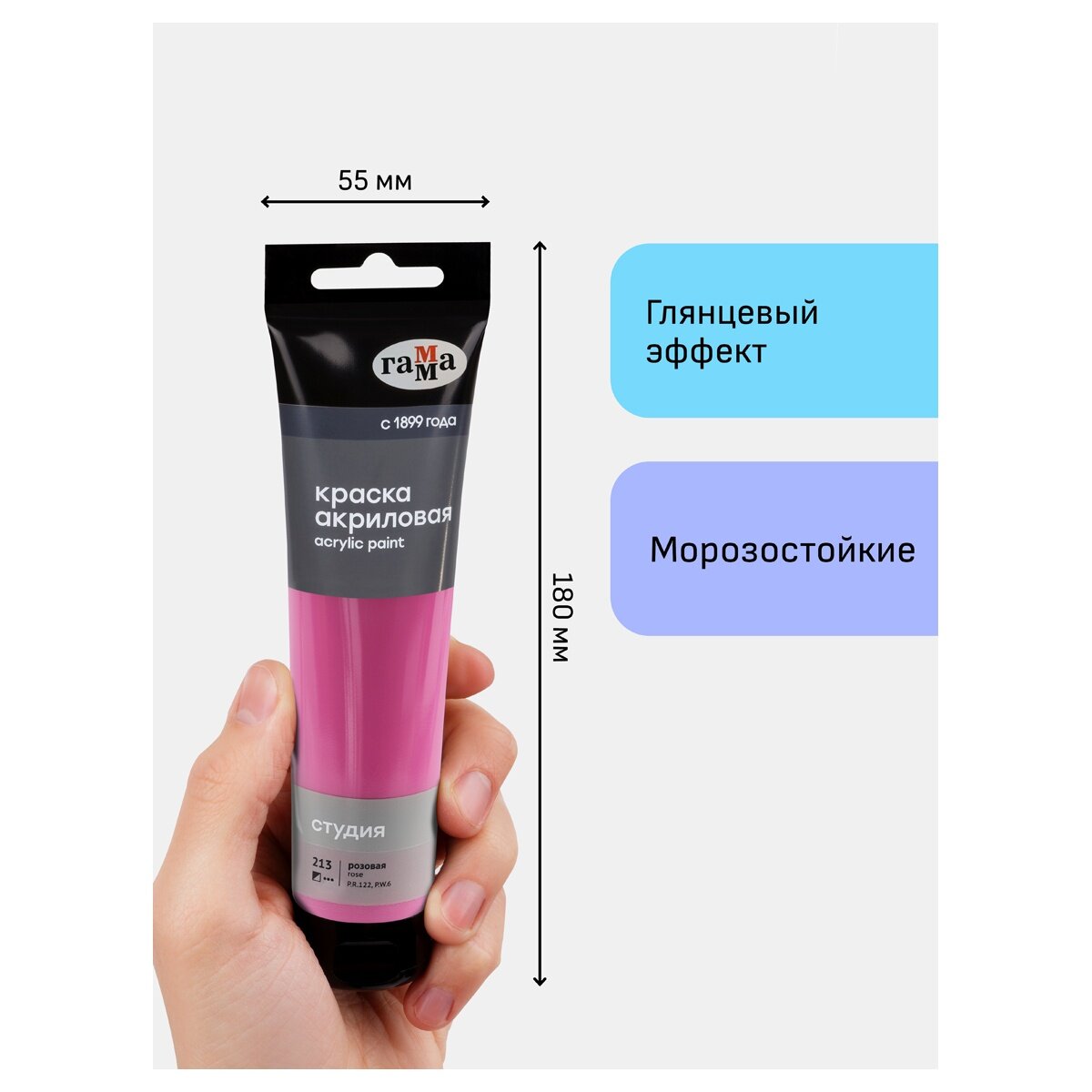 1 шт - Краска акриловая художественная Гамма "Студия", 110мл, пластиковая туба, розовая информация: