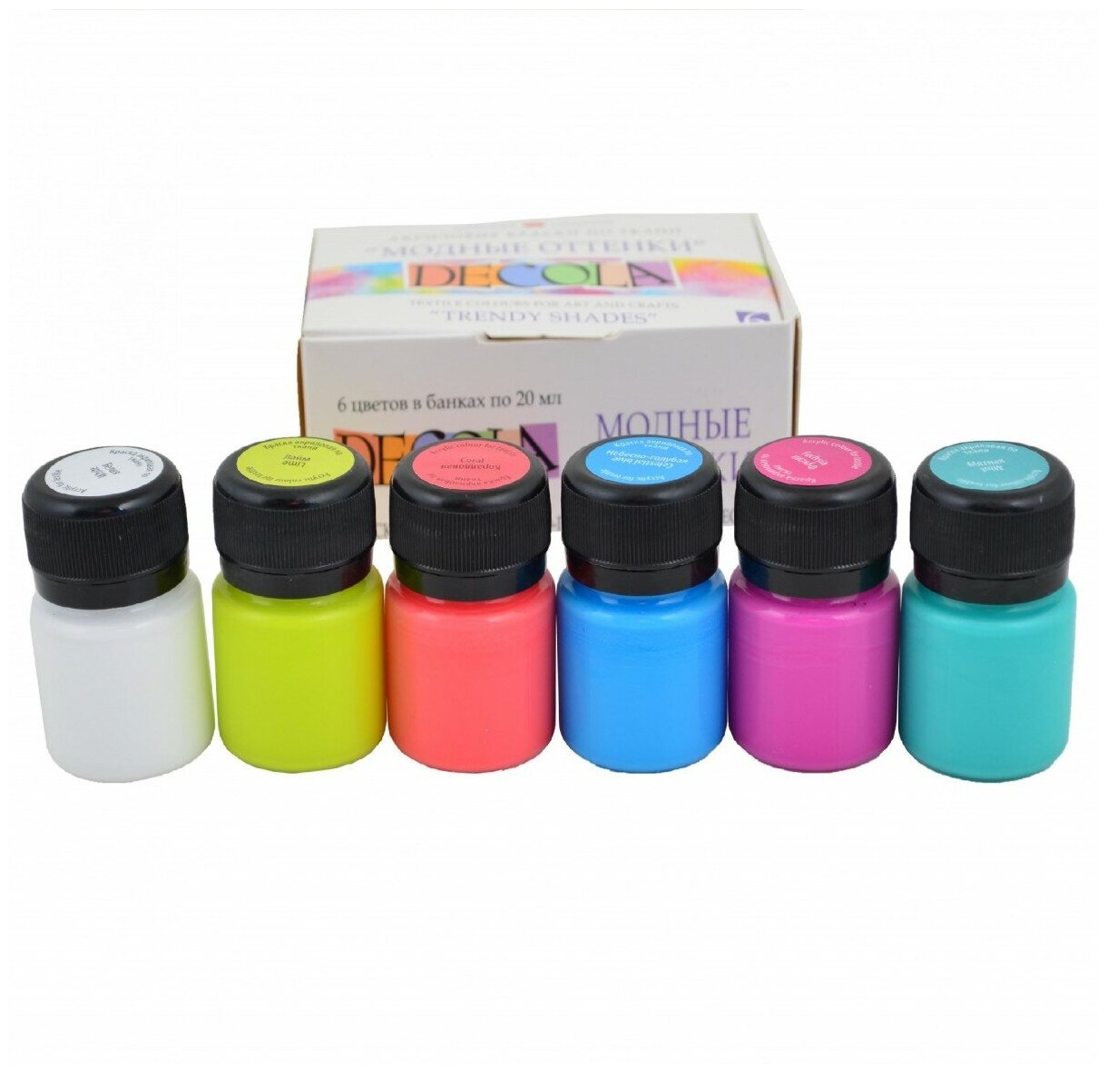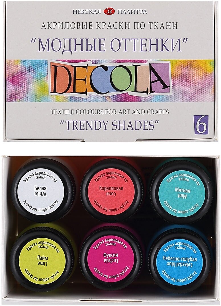 10 цен на DECOLA / Акриловые краски по ткани "Модные оттенки", 6 цветов по 20 мл, ЗХК Невская палитра