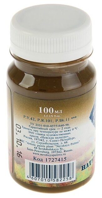 Гуашь (краска) художественная для рисования Невская палитра Мастер-Класс, 100 мл, умбра натуральная информация: