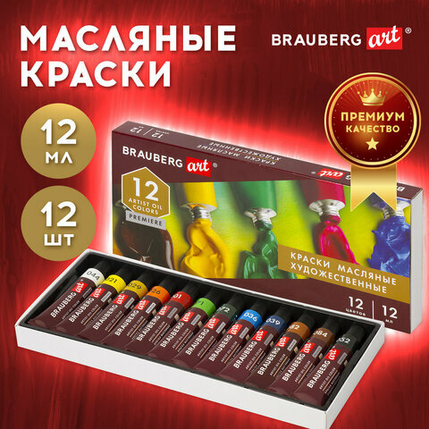 Краски масляные художественные BRAUBERG ART PREMIERE, 12 цв по 12 мл, проф. серия, в тубах, 191455 507 ₽