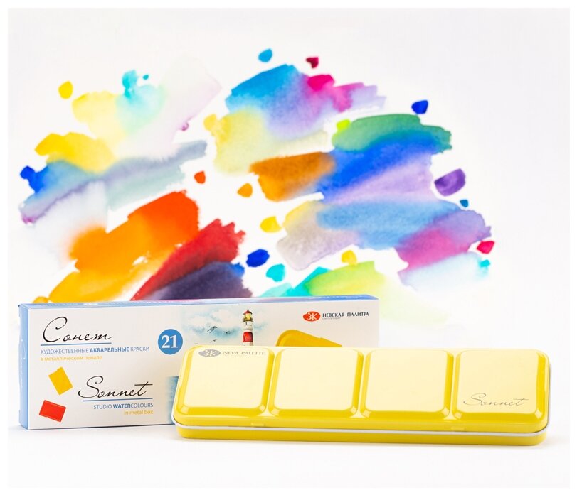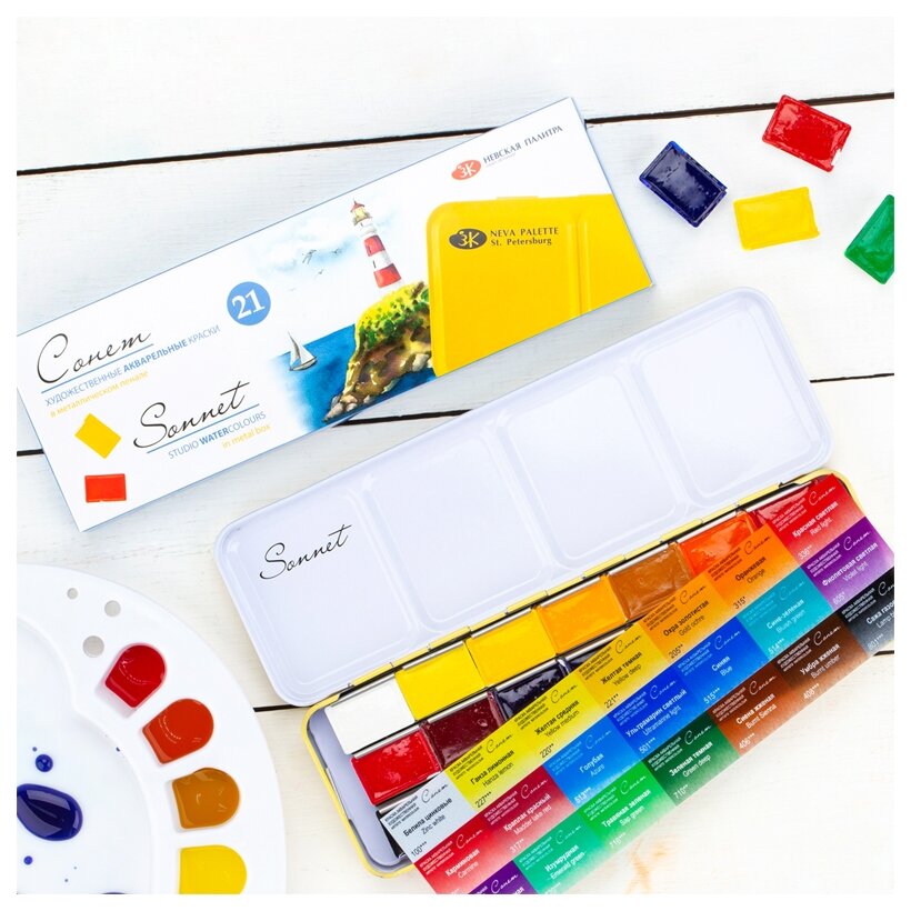 Краски акварельные Сонет ЗХК Невская палитра, 21 цвет в металлическом пенале (351101514) информация: