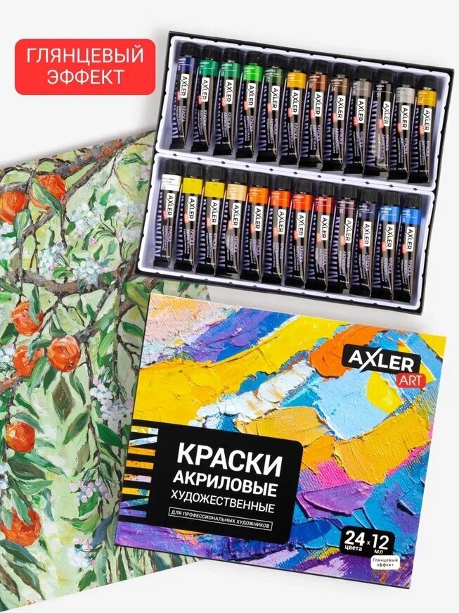Отзывы на Краски акриловые AXLER Art Classic, набор 24 тюбика по 12 мл, глянцевые, для рисования, для профессиональных художников