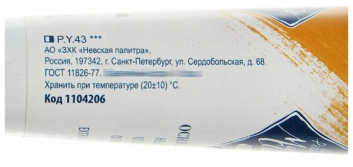Краска масляная 46мл, Кадмий жёлтый тёмный Мастер-класс Невская палитра 1104304