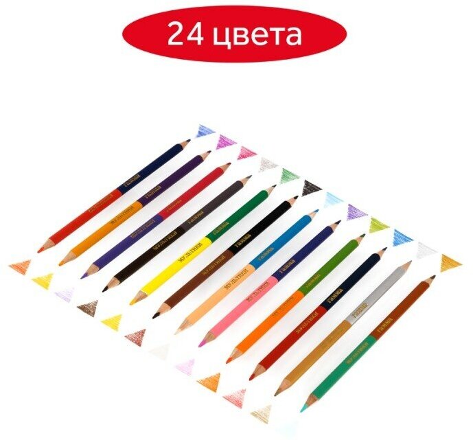 10 цен на Цветные карандаши для школы 24 цвета, двусторонние трехгранные / Набор цветных карандашей для рисования школьный Гамма "Мультики"