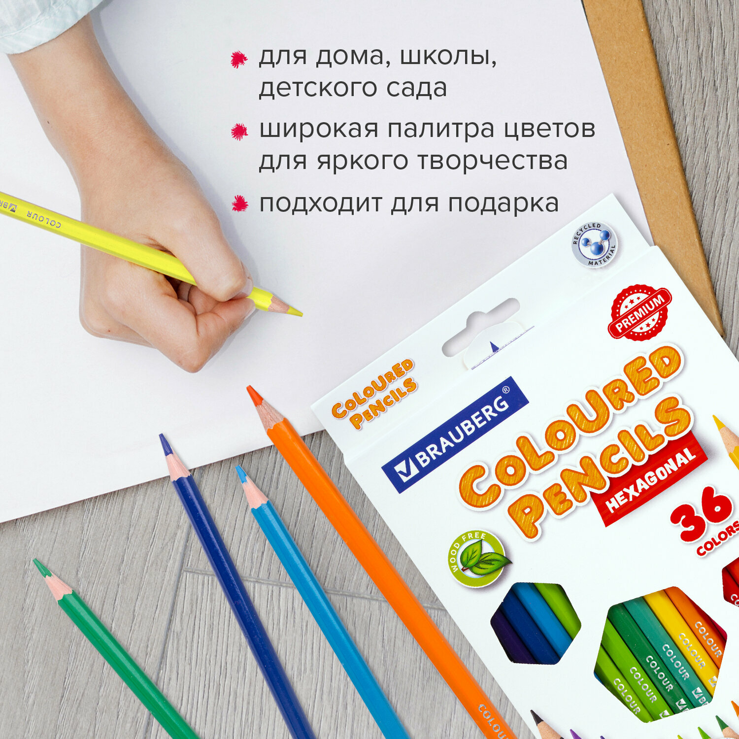 10 цен на Карандаши цветные Brauberg Premium, 36 цветов, пластиковые, шестигранные, грифель мягкий 3 мм, 181669