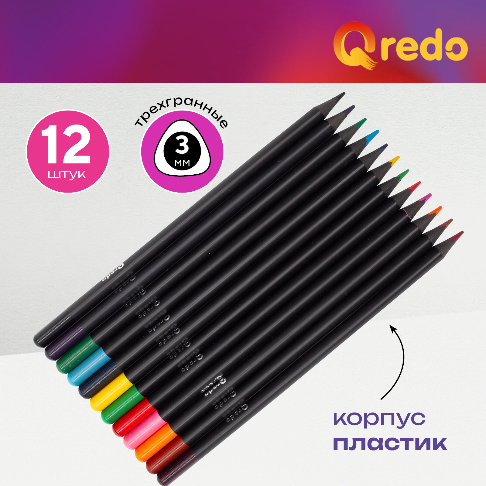 10 цен на Карандаши цветные пластиковые QREDO "FOX", 12 цветов, гриф. d=3мм, трехгранные