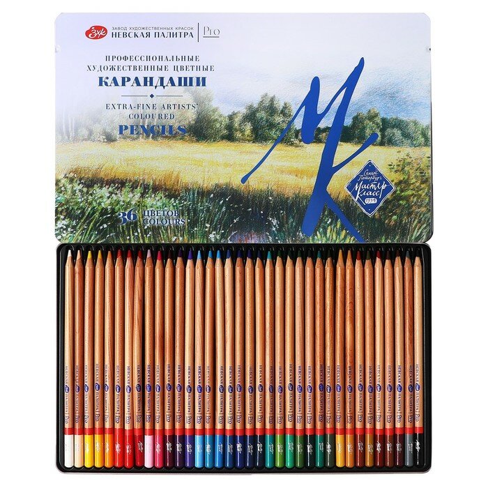 10 цен на Карандаши цветные профессиональные для рисования Мастер-Класс, 36 цветов, в жестяном пенале
