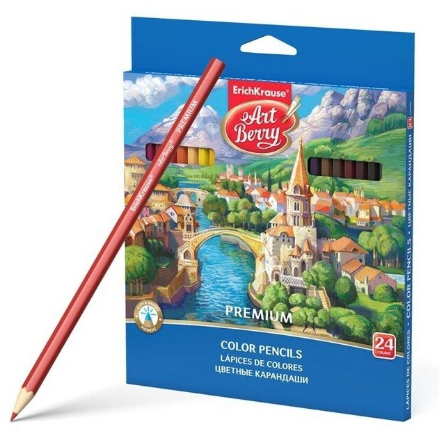 Отзывы на Карандаши 24 цвета ErichKrause ArtBerry премиум, дерево, шестигранные, яркий и мягкий грифель 3.0 мм, картонная упаковка, европодвес