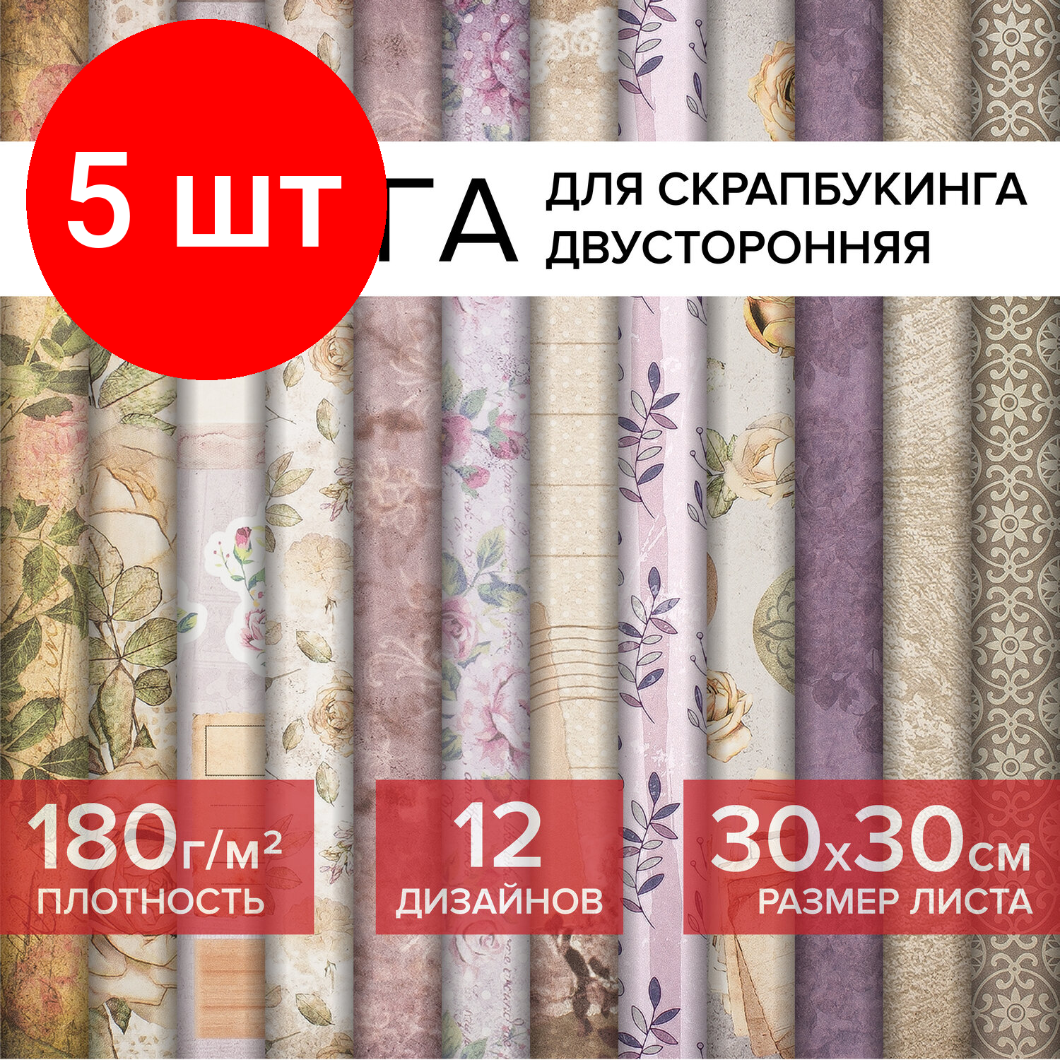Комплект 5 шт, Бумага для скрапбукинга 30х30 см "Винтаж", двусторонняя, 12 листов, 12 дизайнов, 180 г/м2, остров сокровищ, 662766 информация: