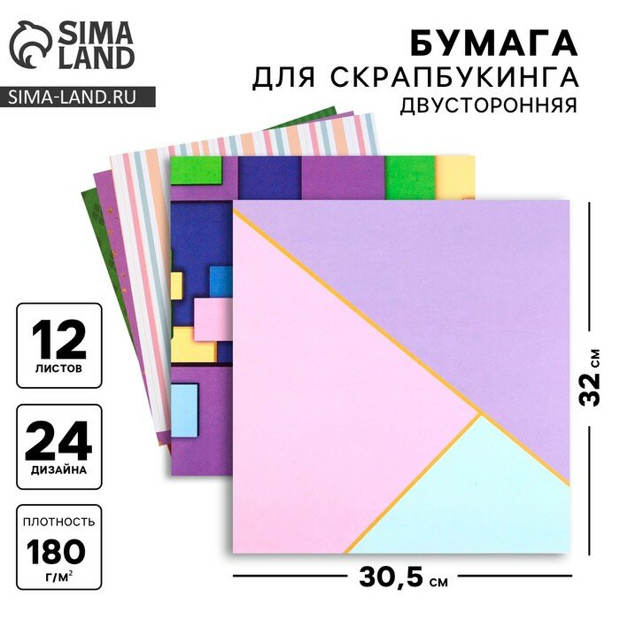 Набор бумаги для скрапбукинга "Яркая геометрия" 12 листов 30.5 х 30.5 см 180 г/м 10075221 информация: