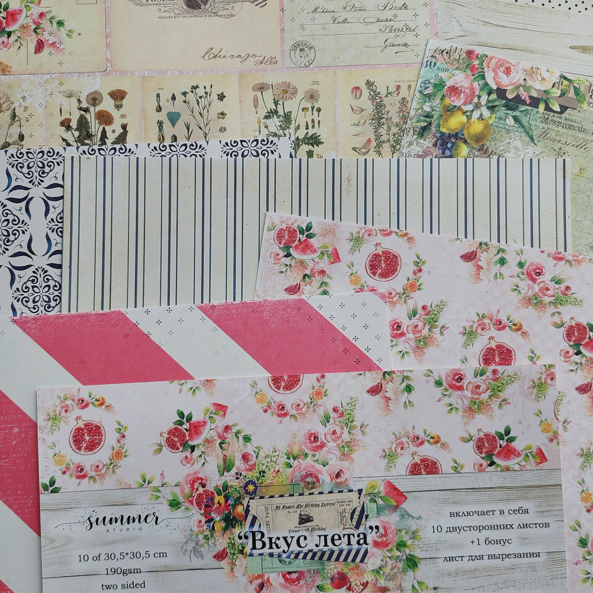 10 цен на Набор двусторонней бумаги "Вкус лета" от Summer Studio 190гр, 30,5*30,5см, 10 листов + 1 бонус
