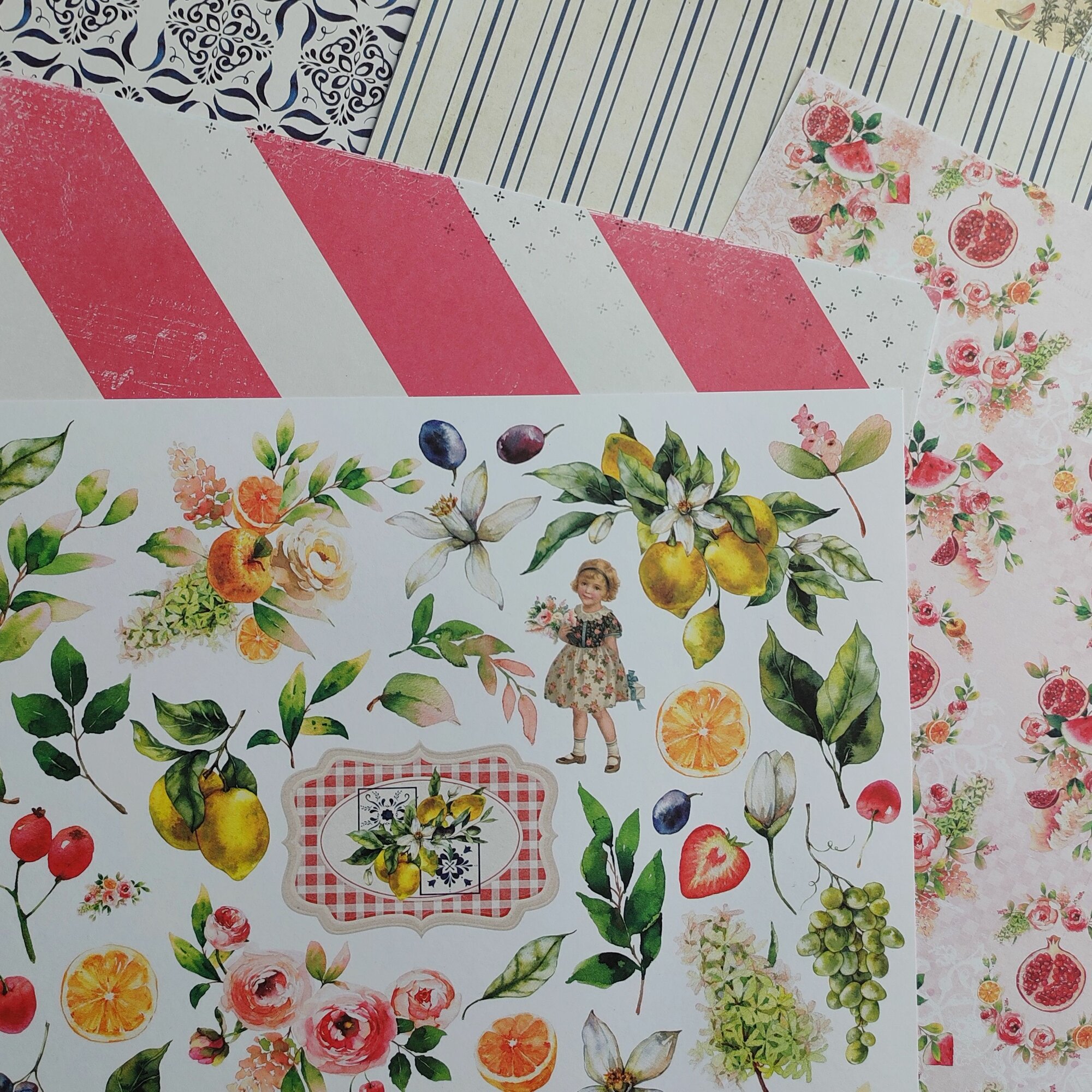 Набор двусторонней бумаги "Вкус лета" от Summer Studio 190гр, 30,5*30,5см, 10 листов + 1 бонус информация: