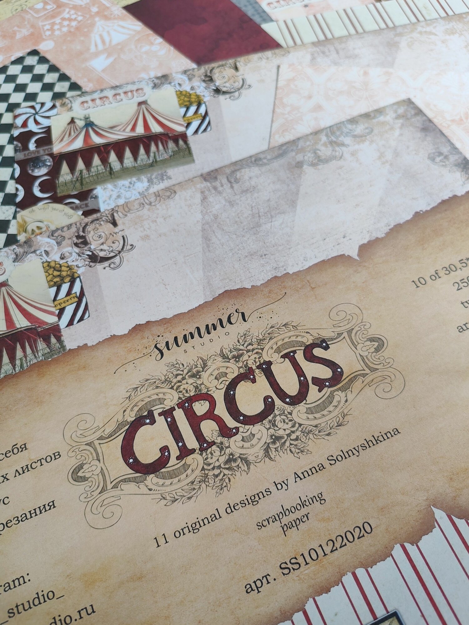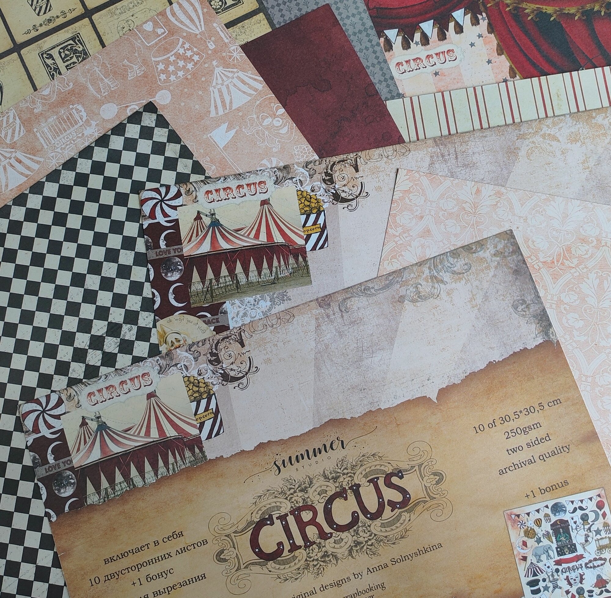Отзывы на Набор двусторонней бумаги "Circus" 250гр, от Summer Studio, 30,5*30,5см, 10 листов + 1 бонус, + чипборд в подарок