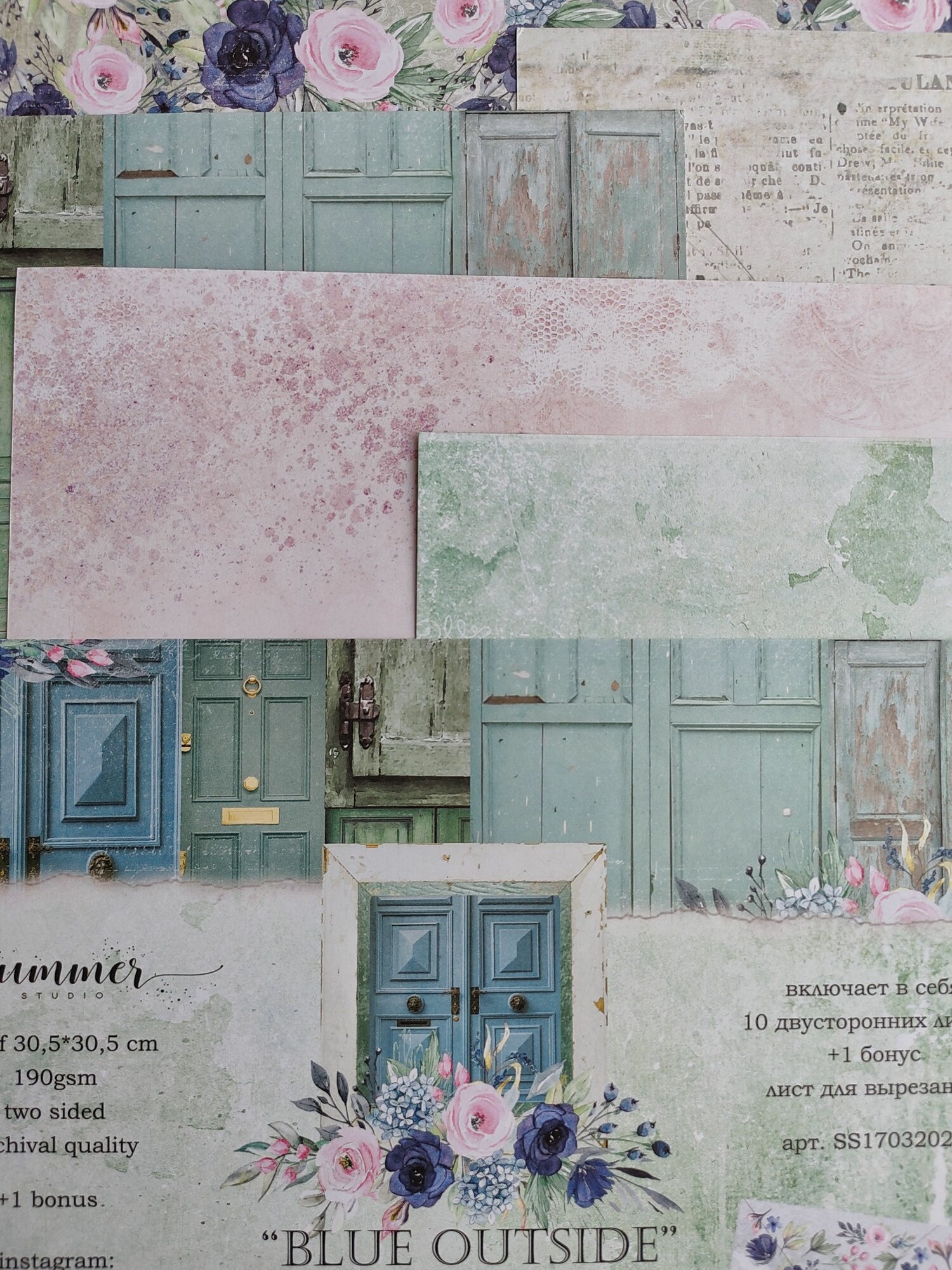 Набор двусторонней бумаги "Blue outside" от Summer Studio 190гр, 30,5*30,5см, 10 листов + 1 бонус информация: