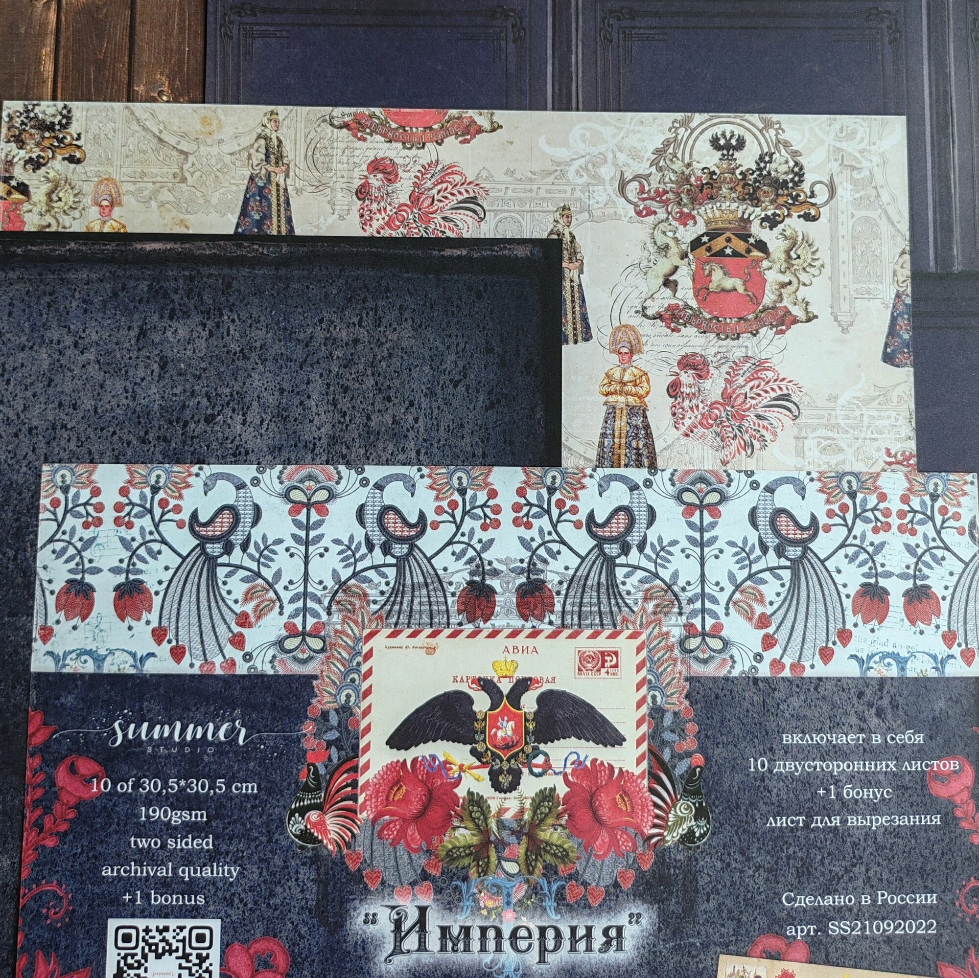 Набор двусторонней бумаги "Империя" 250гр, от Summer Studio, 30,5*30,5см, 10 листов + 1 бонус информация: