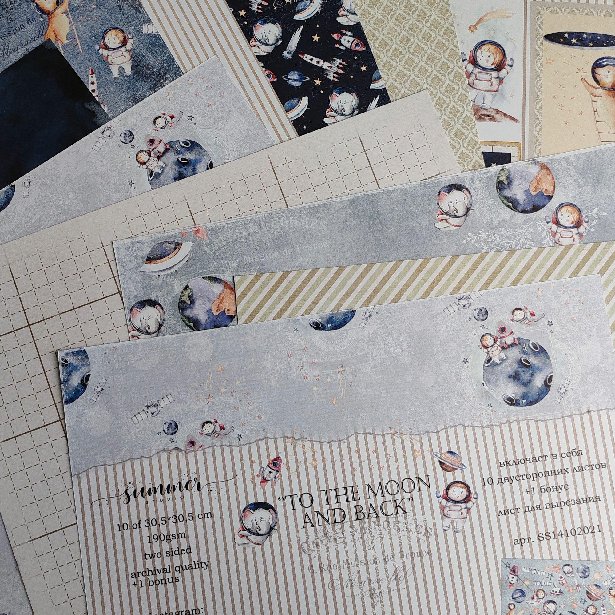 Набор двусторонней бумаги "To the moon and back" 190гр, от Summer Studio, 30,5*30,5см, 10 листов + 1 бонус информация: