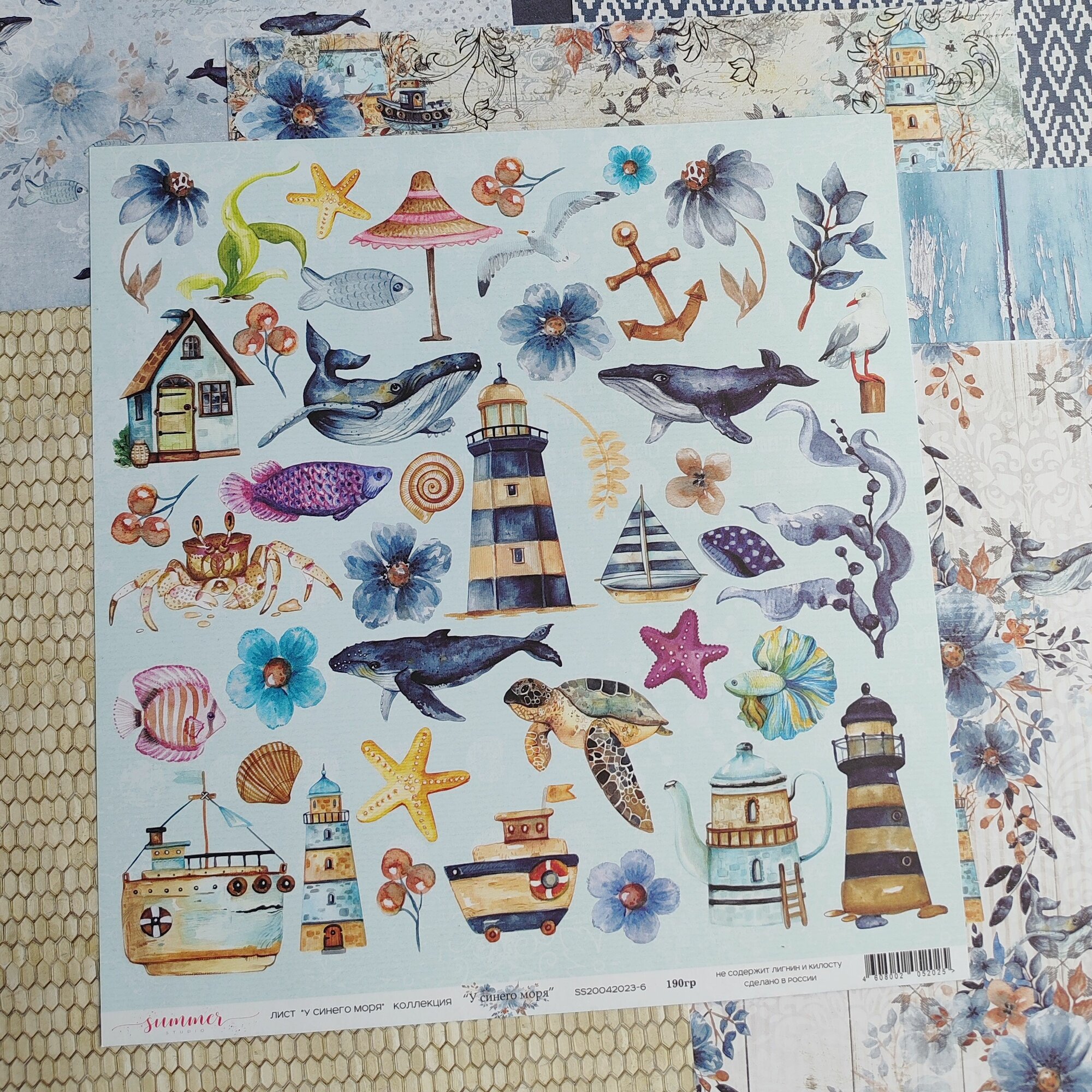 Набор двусторонней бумаги "У синего моря" 190 гр, от Summer Studio, 30,5*30,5см, 10 листов + 1 бонус информация: