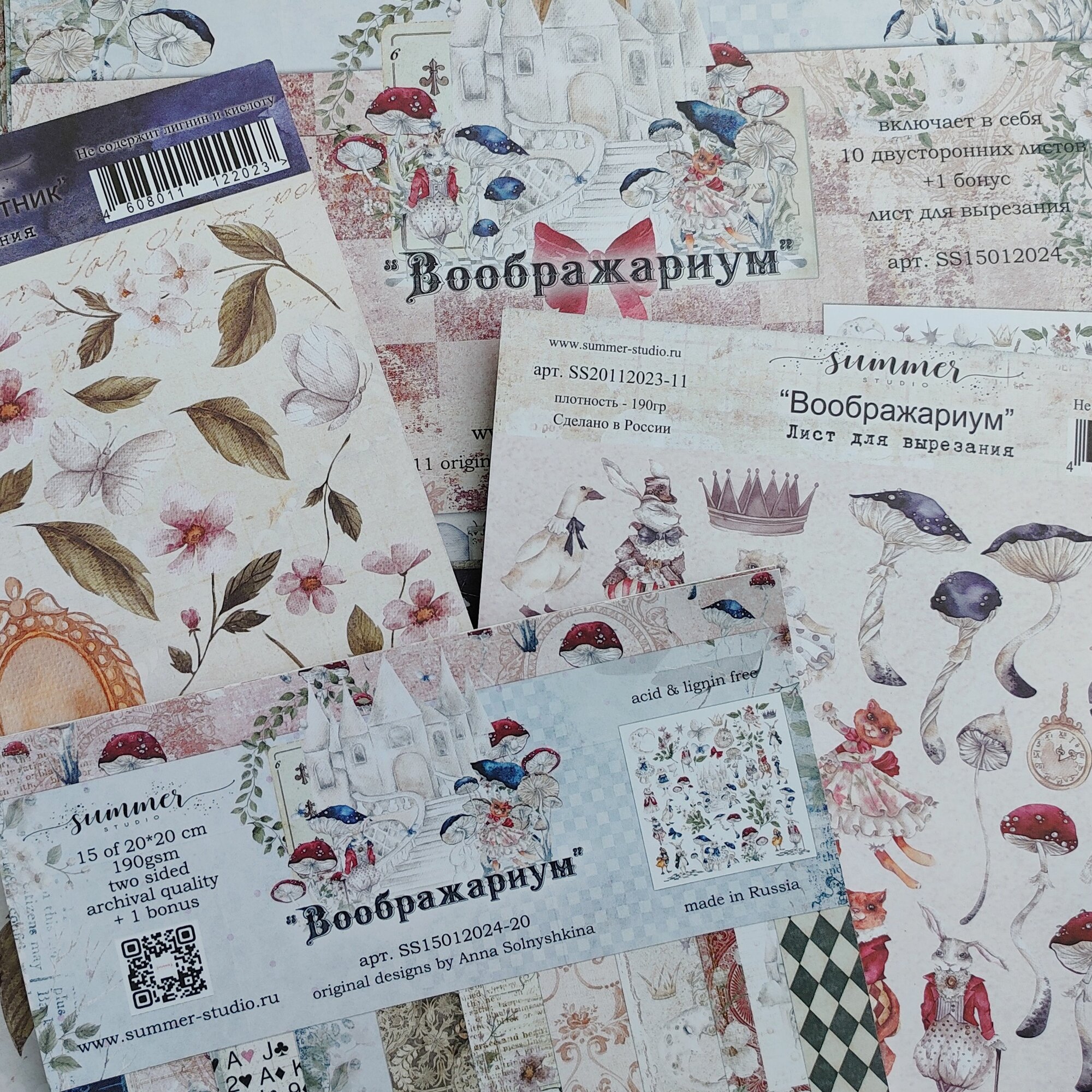 Набор двусторонней бумаги для скрапбукинга "Воображариум" (30х30 см, 20х20 см + 2 листа а4 для вырезания) от Summer Studio информация: