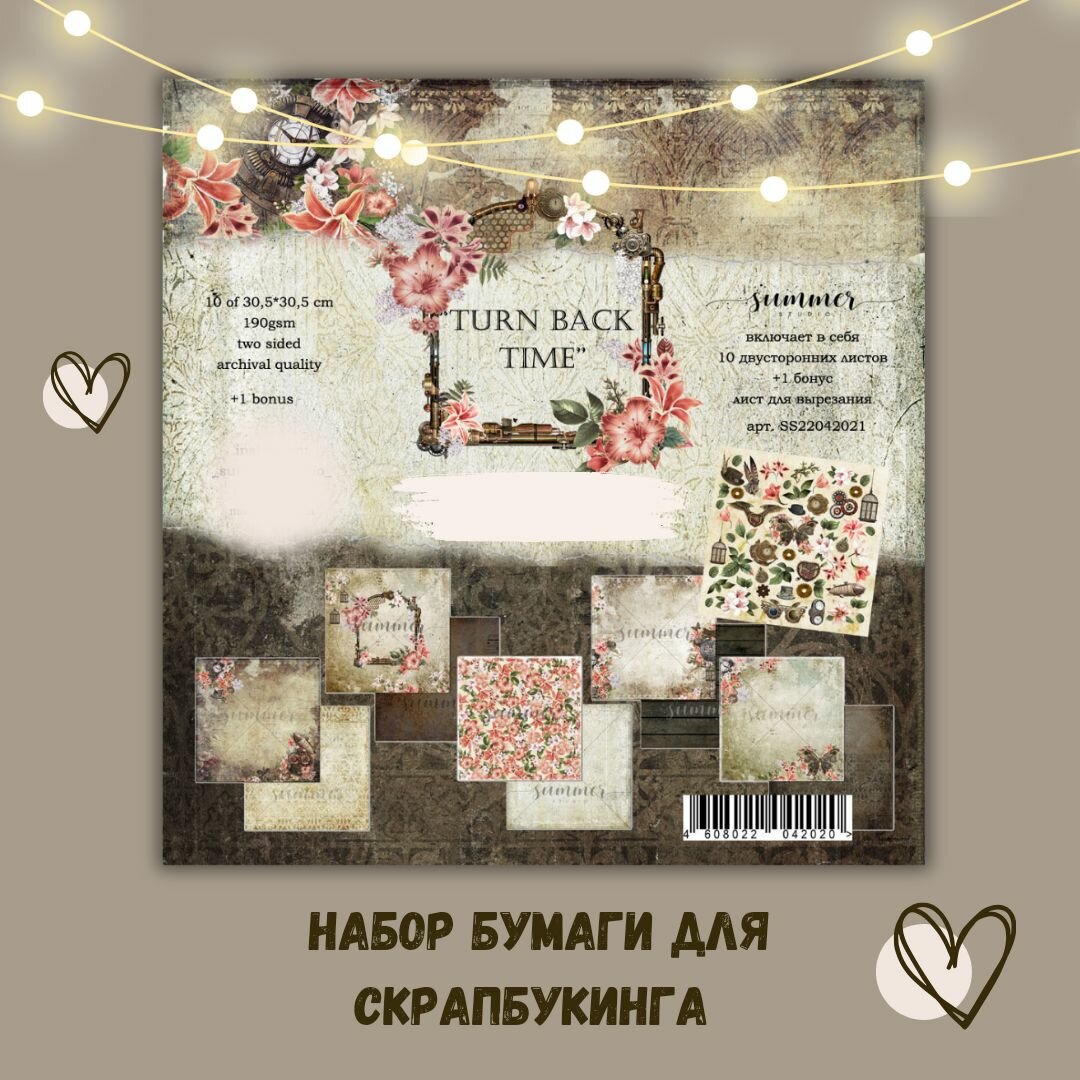 10 цен на Набор двусторонней бумаги "Turn back time" 190гр, от Summer Studio, 30,5*30,5см, 10 листов + 1 бонус