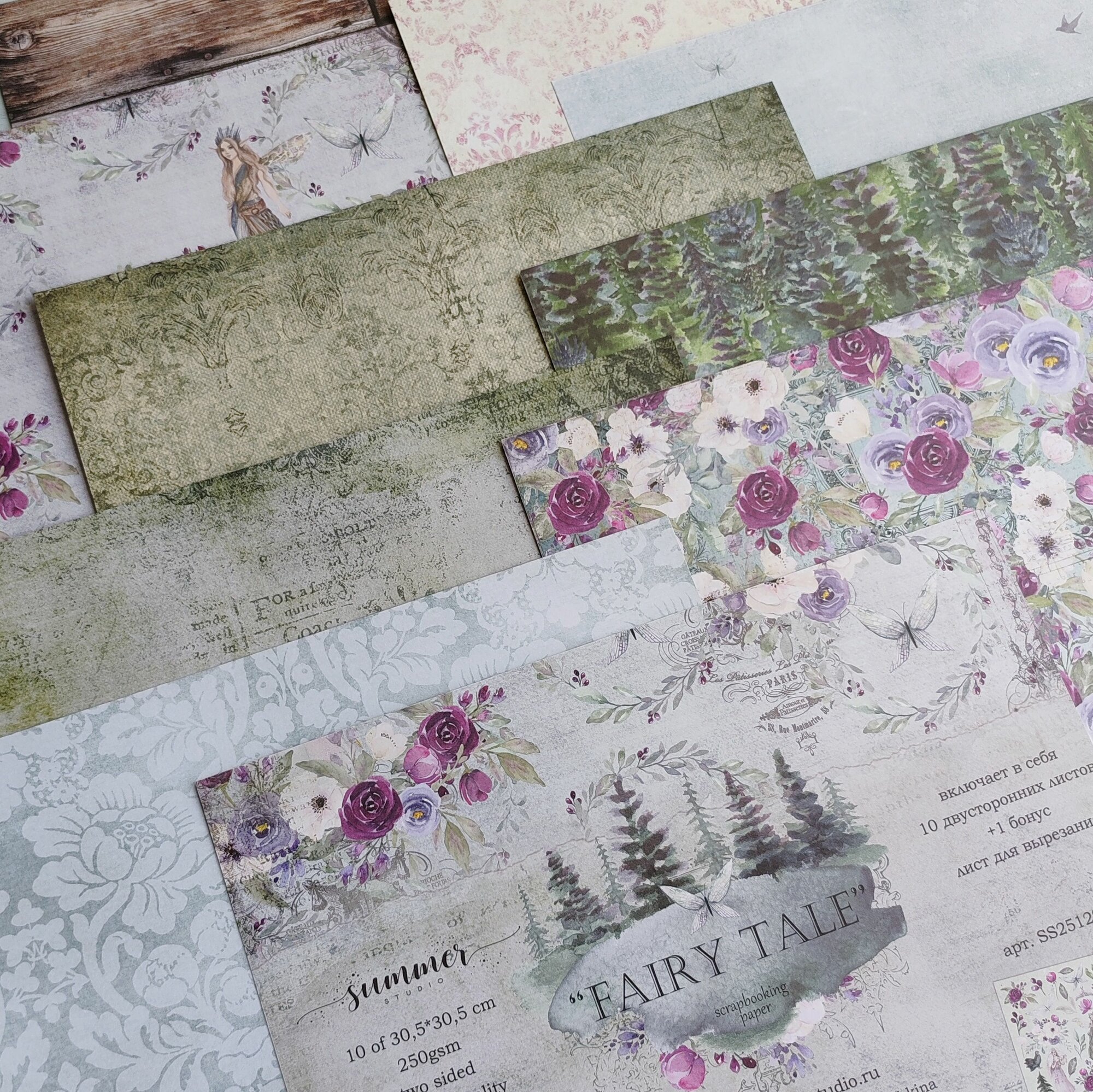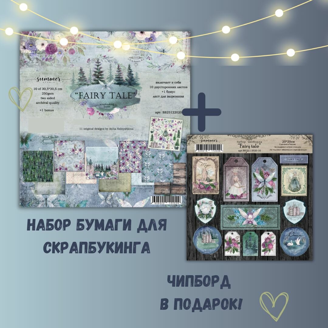 10 цен на Набор двусторонней бумаги "Fairy tale" 250гр, от Summer Studio, 30,5*30,5см, 10 листов + 1 бонус + чипборд в подарок