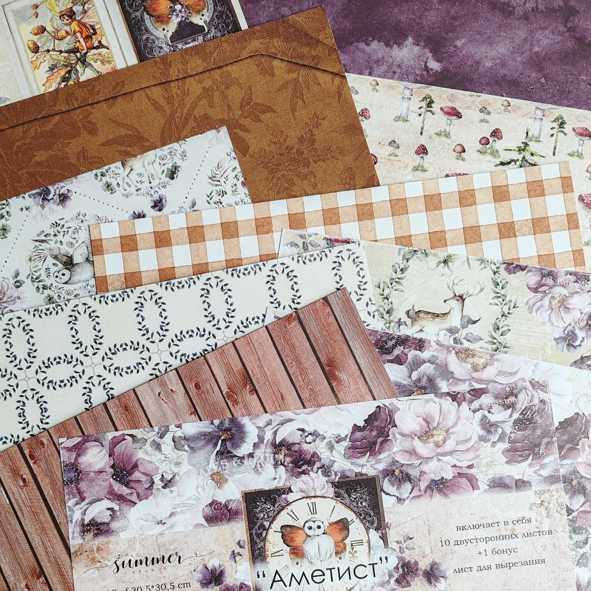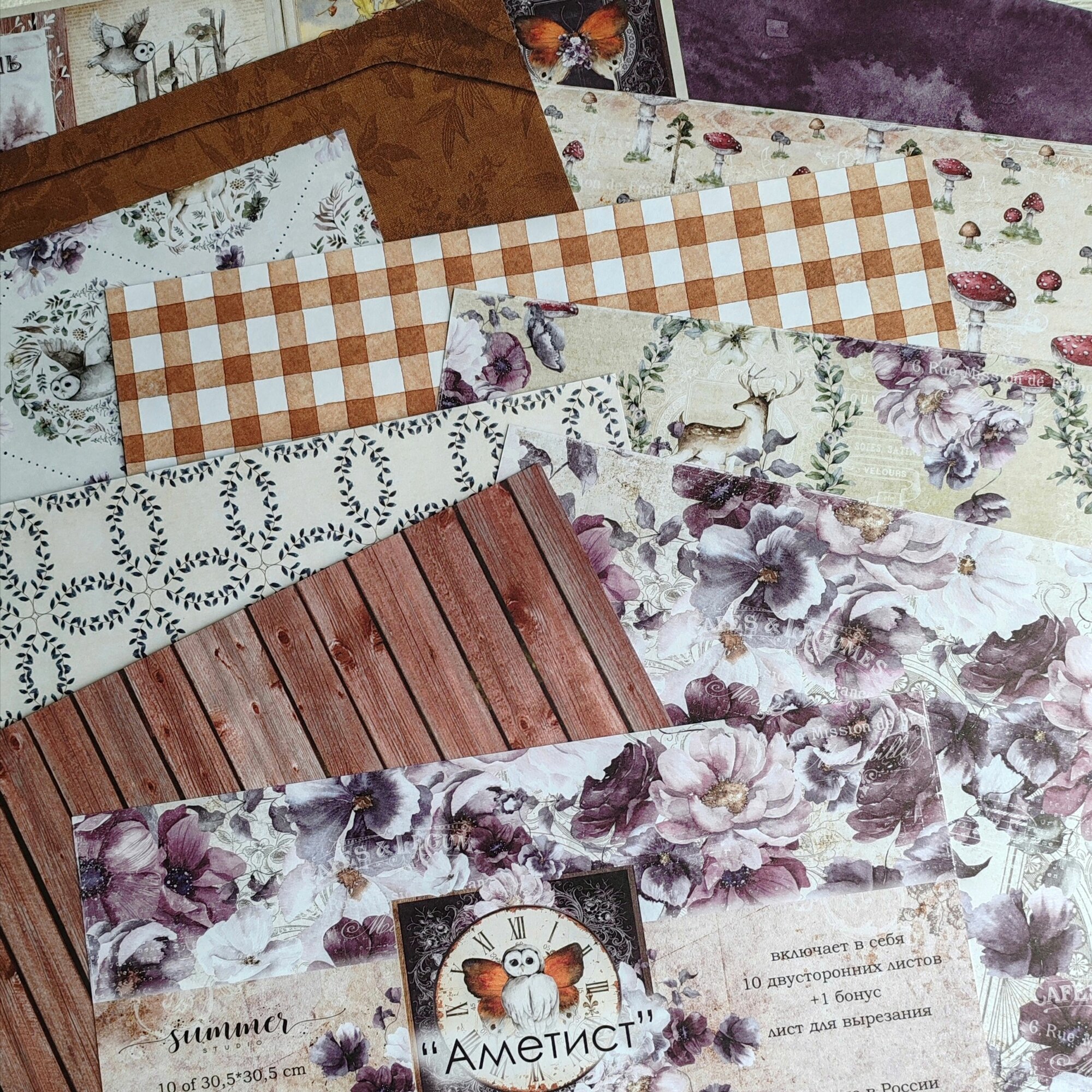 Набор двусторонней бумаги "Аметист" от Summer Studio 190гр, 30,5*30,5см, 10 листов + 1 бонус информация: