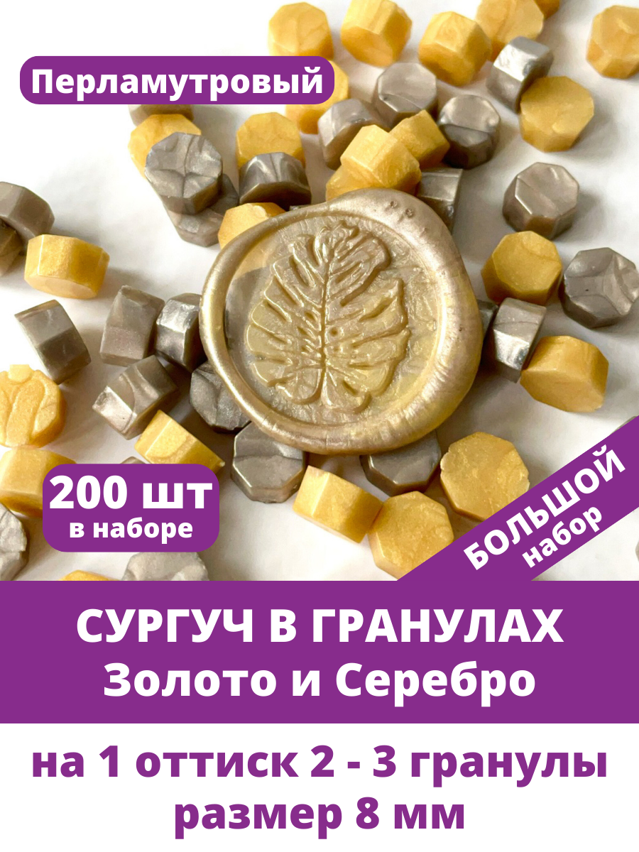 Сургуч гранулы для печати и штампа, Перламутровый, цвет Золото и теплое Серебро, в наборе 200 штук информация: