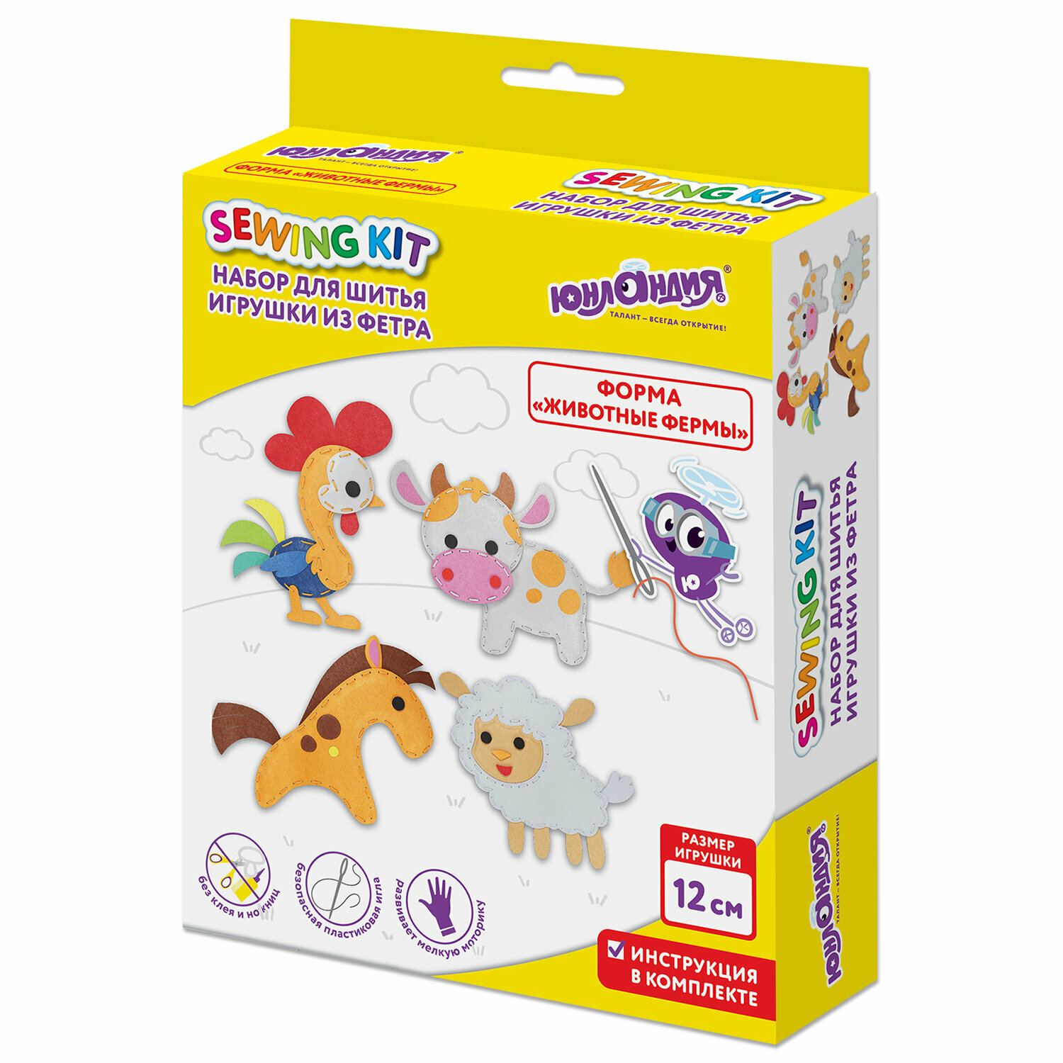 Набор для шитья игрушки Юнландия из фетра, "Животные фермы", 4 игрушки информация: