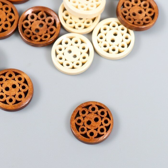 Пуговицы дерево ТероПром 5367571 для творчества 2 прокола "Цветок из пузырей" набор 20 шт 1,8х1,8х0,3 см товар без выбора конкретного цвета информация: