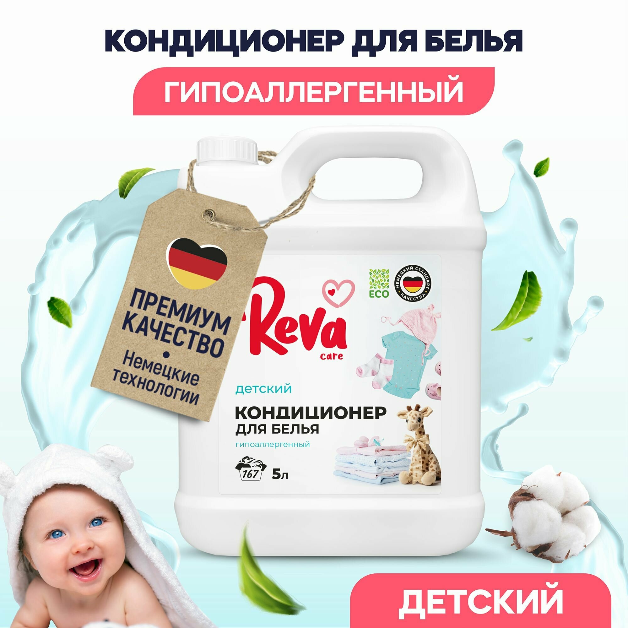 Кондиционер для белья детский Reva Care гипоаллергенный концентрированный на 166 стирок, жидкое средство для стирки, 5 литров информация: