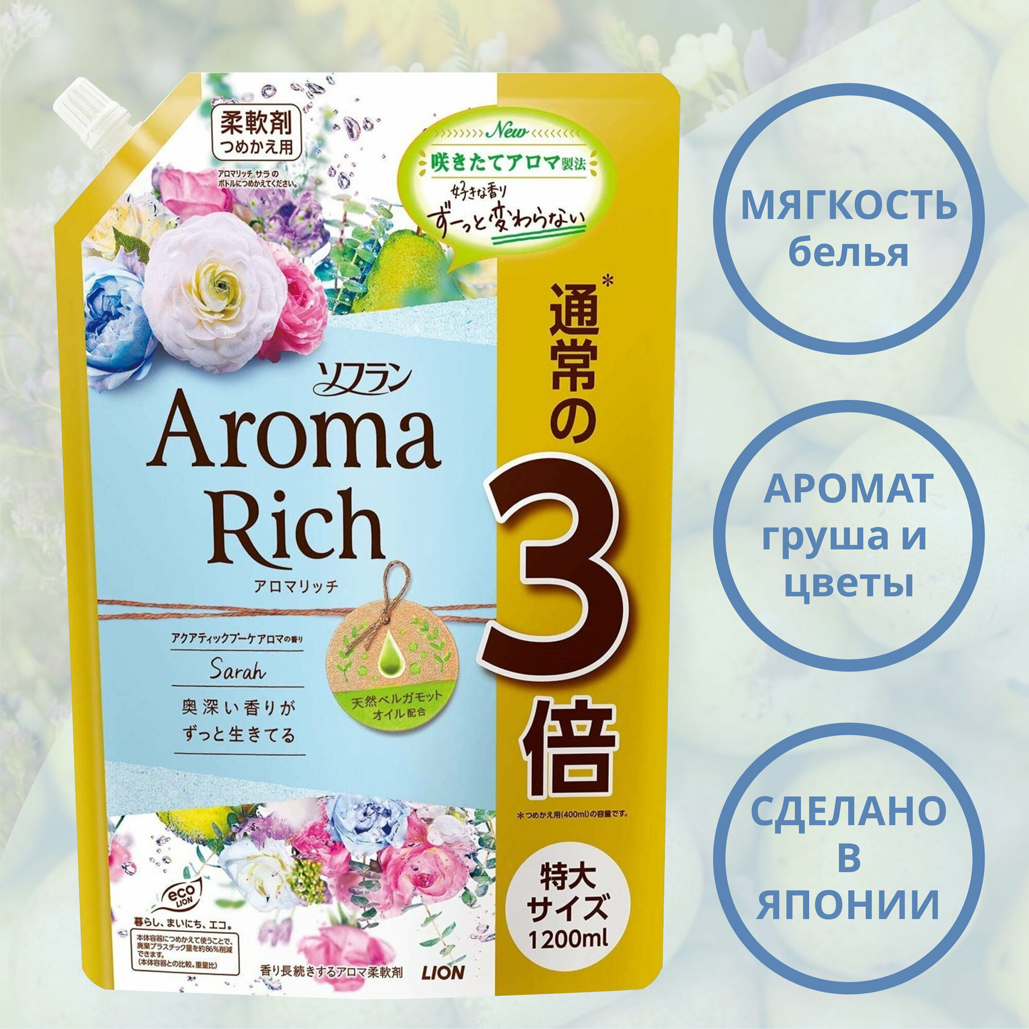 10 цен на Lion Aroma Rich Sarah Кондиционер для белья с ароматом цветов и груши, 1200 мл, Япония
