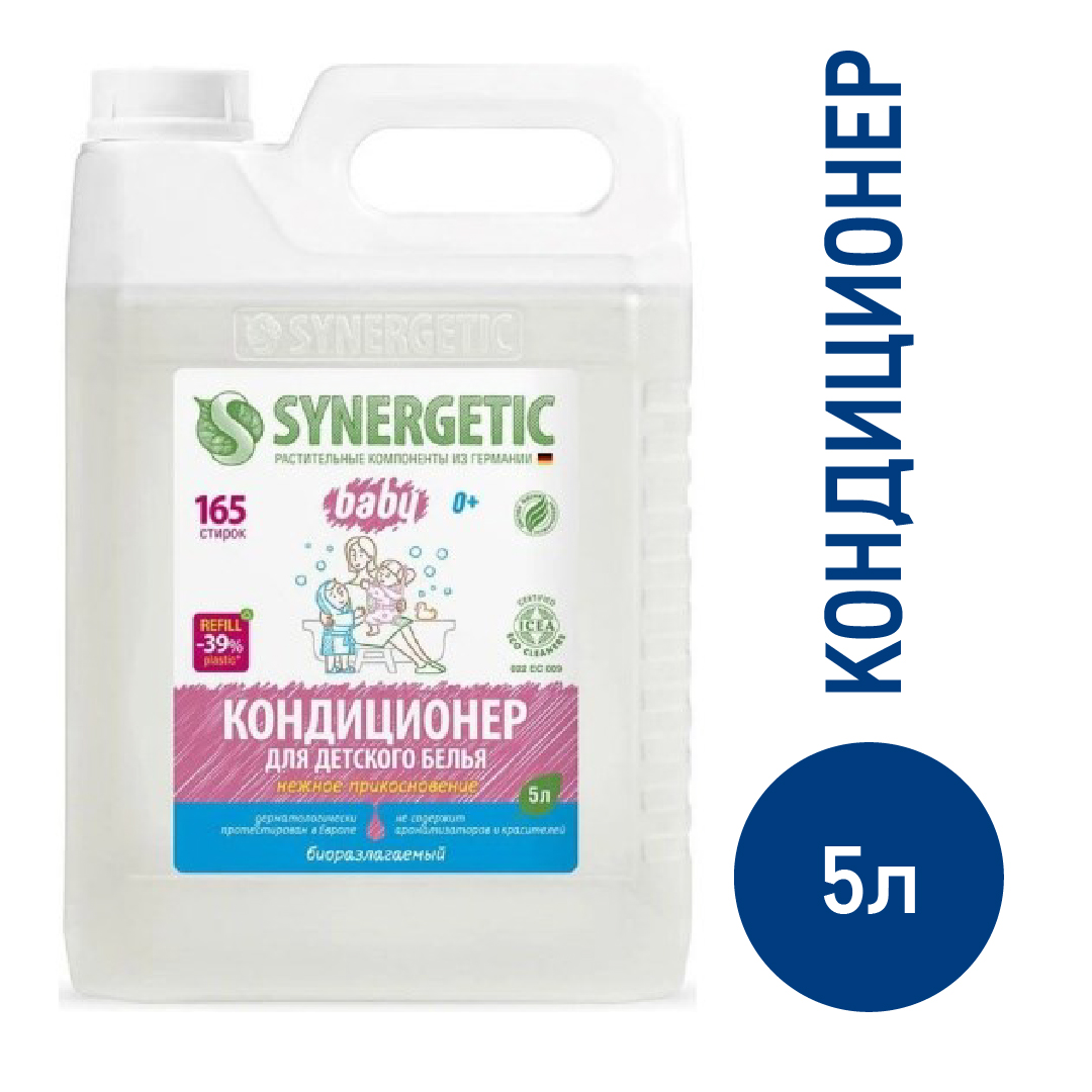 Кондиционер для детского белья Synergetic Нежное прикосновение гипоаллергенный без запаха 165 стирок 5 л информация: