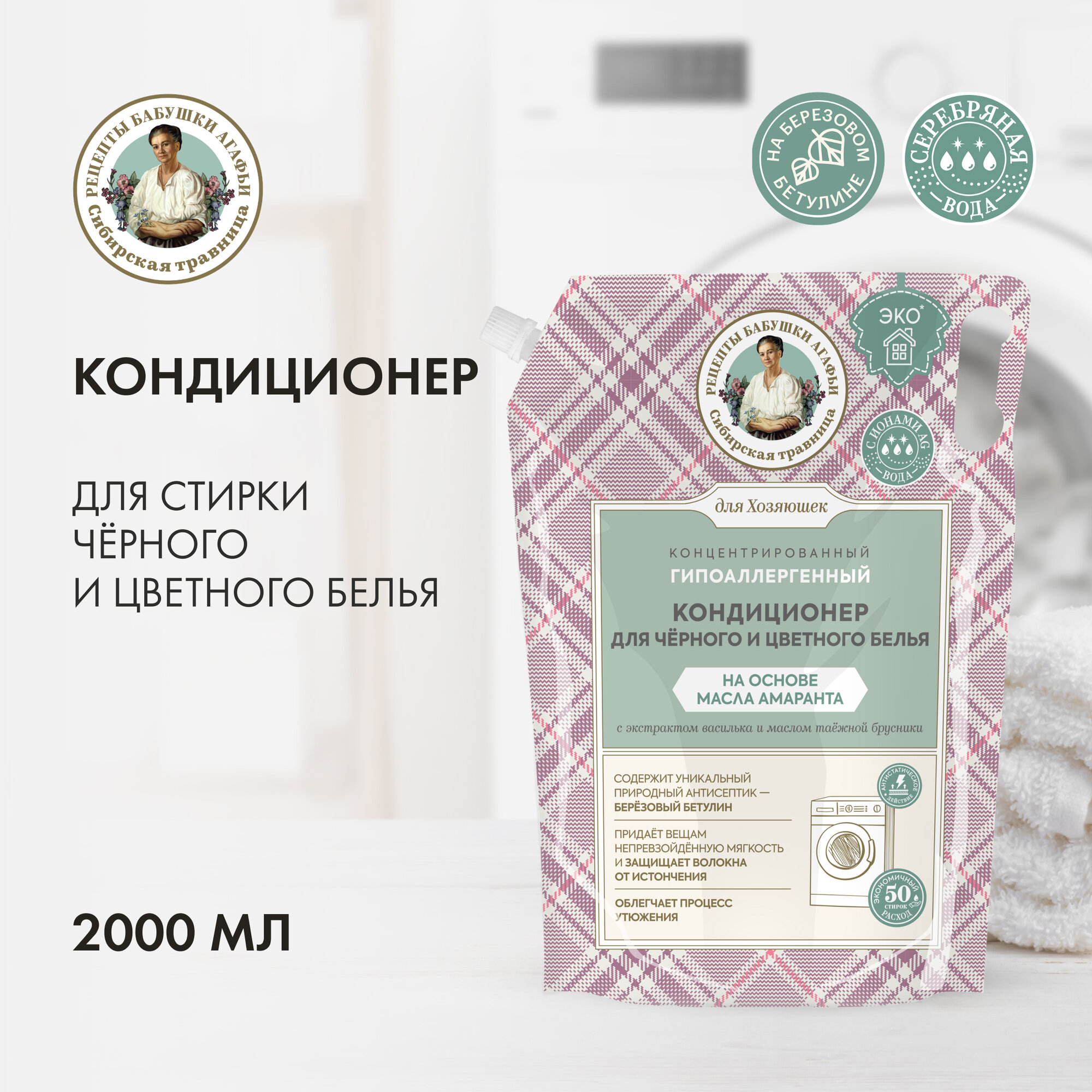 Кондиционер Рецепты бабушки Агафьи Для Хозяюшек для чёрного и цветного на основе омыленного масла амаранта Концентрированный, 2000 мл информация: