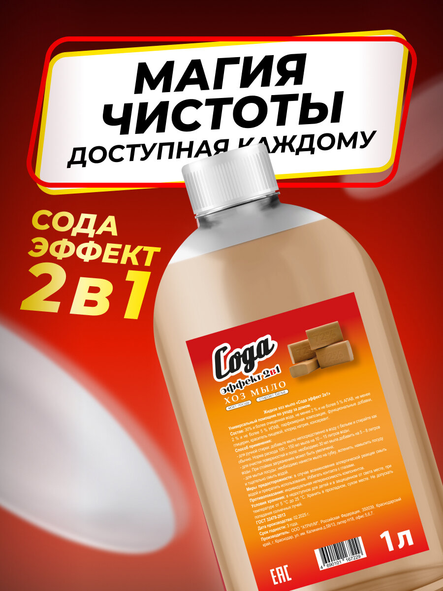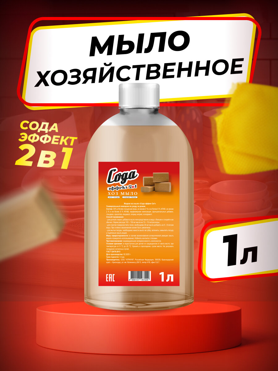 10 цен на Жидкое хозяйственное мыло Сода эффект 2в1, флакон 1л