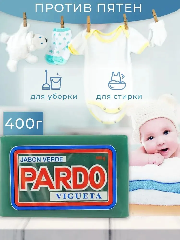 Отзывы на Мыло хозяйственное отбеливающее PARDO Vigueta зеленое твердое против пятен (Испания) 400 гр.