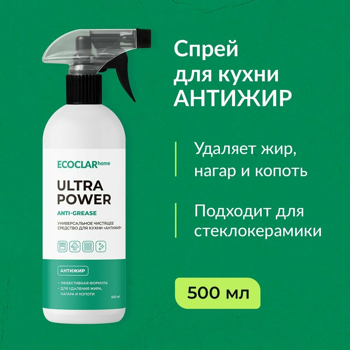 ECOCLARhome Универсальное чистящее средство для кухни, жироудалитель, для дома, для плит, для духовки, антижир, 500 мл информация: