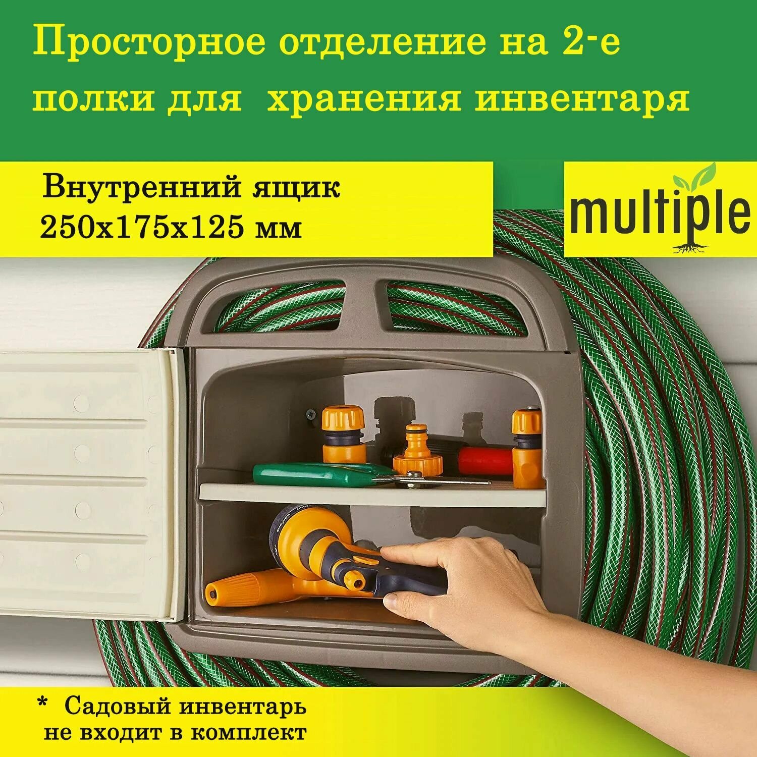 Держатель садового шланга настенный с ящиком для инвентаря HH-HWTB информация: