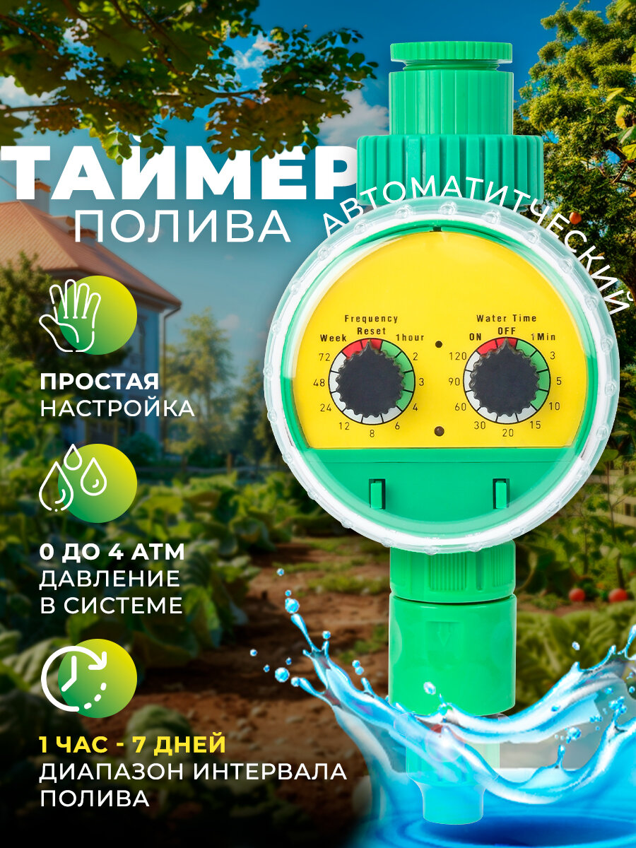 Таймер для полива, до 2-х часов, с набором переходников для подключения, пластик, Greengo