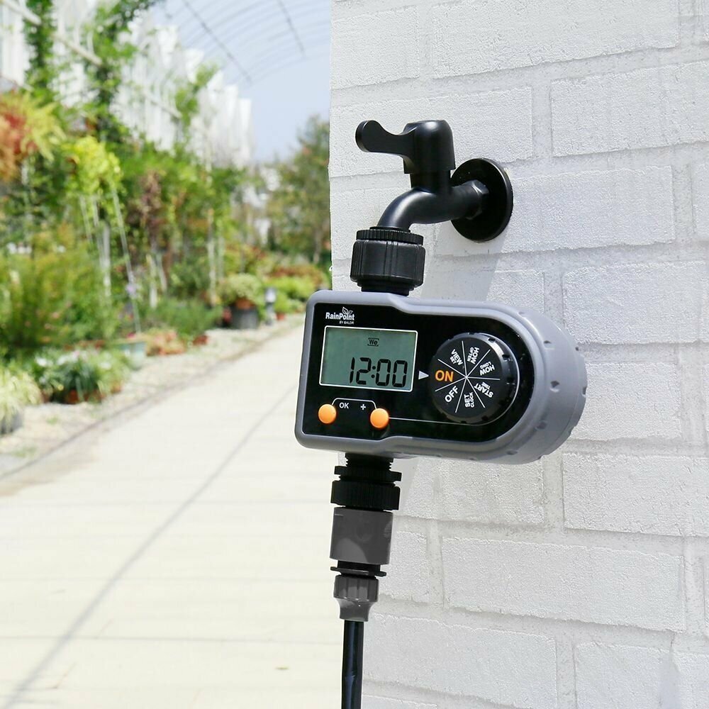 Электронный таймер полива с клапаном для подачи воды Rainpoint 1C с ЖК Дисплеем одноканальный