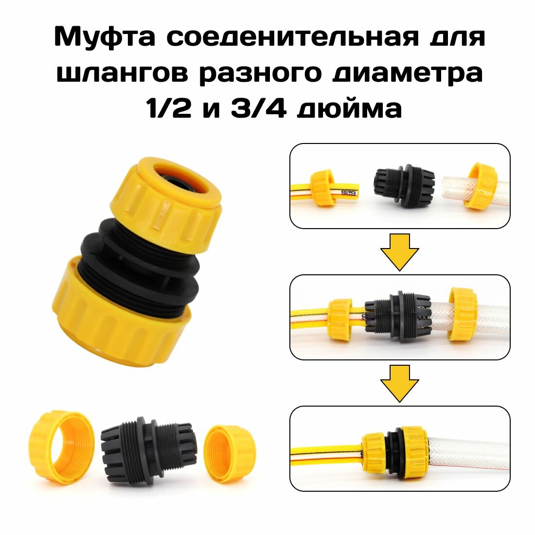 Отзывы на Соединитель для шлангов 1/2" х 3/4" дюйма , переходная ремонтная муфта для садового, поливочного шланга.