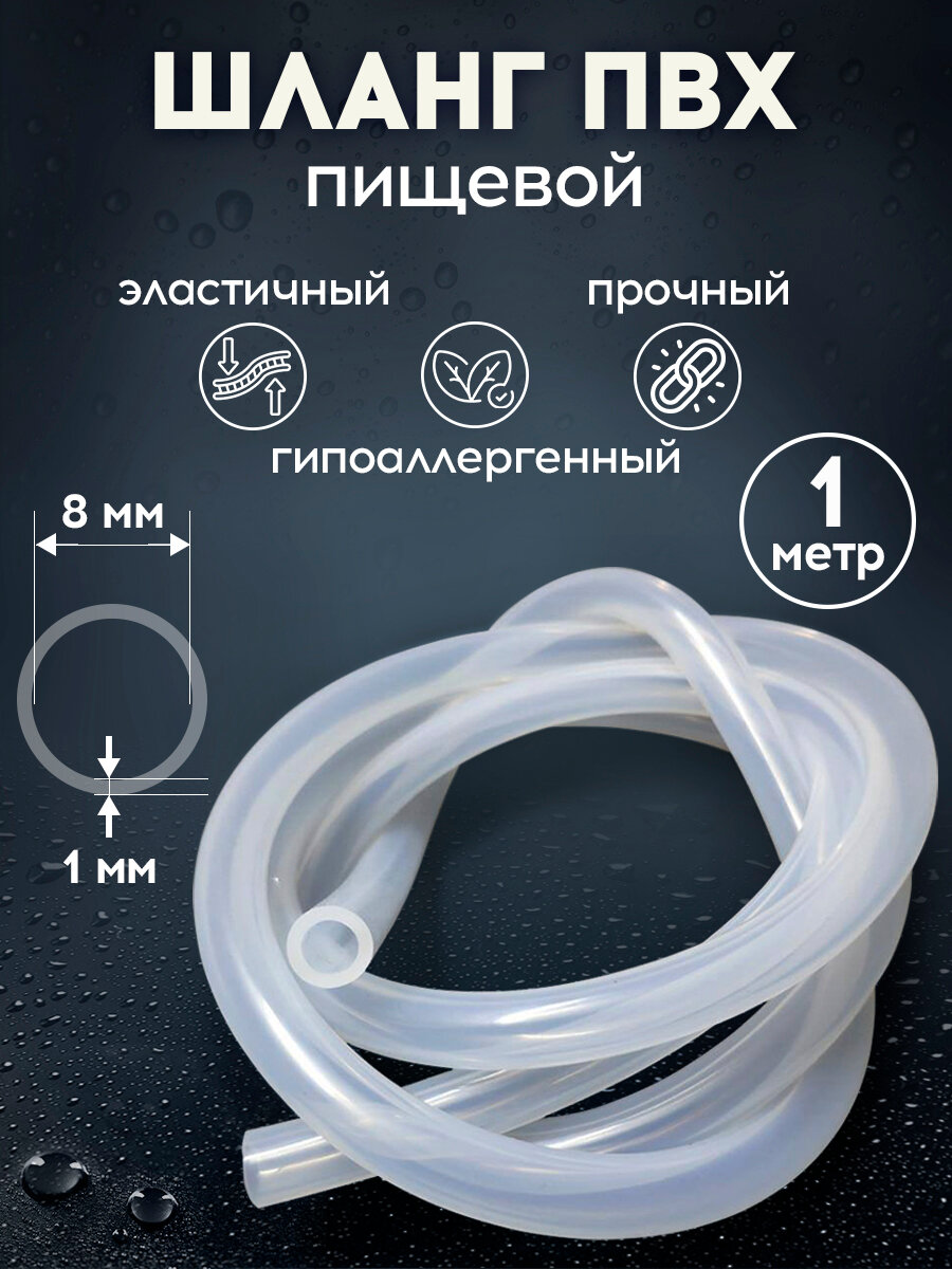 Шланг пищевой прозрачный трубка ПВХ 1 метров, 8мм диаметр информация: